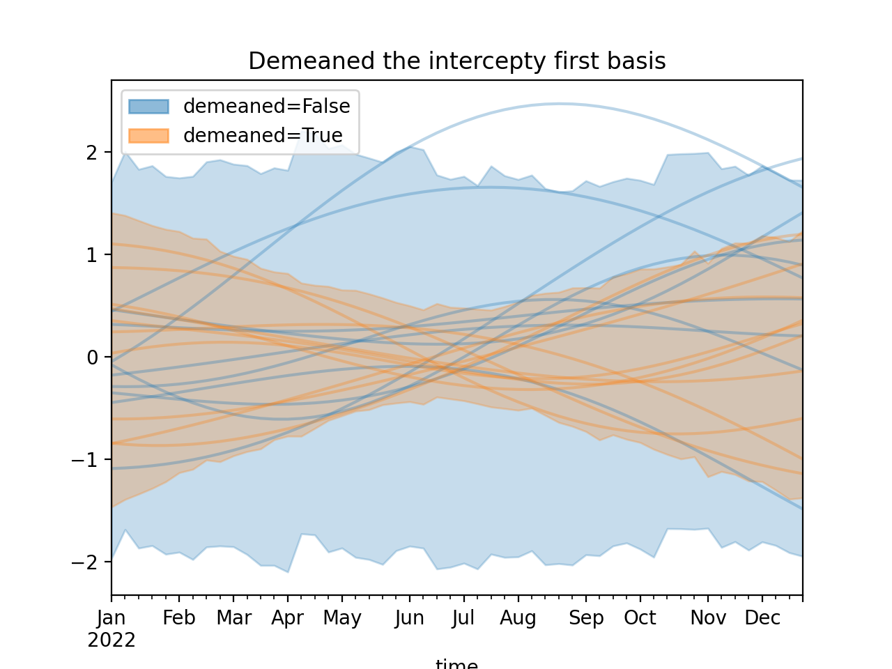 )Using a demeaned basis to remove “intercept” effect of first basis: